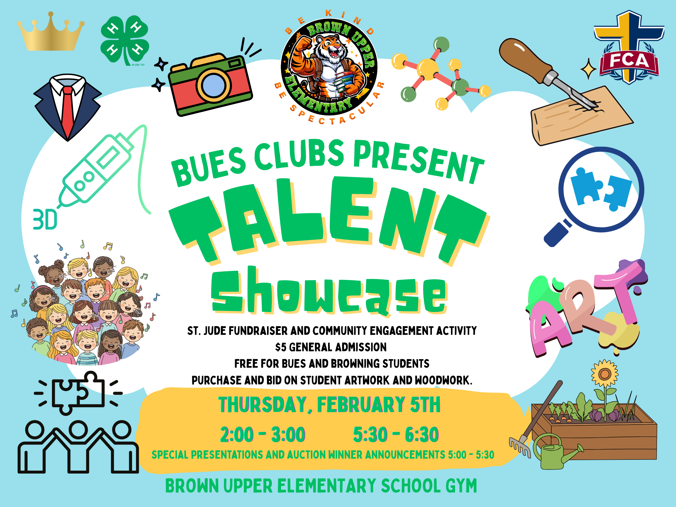 Due to the recent school closure, the Student Talent Showcase has been rescheduled for this Thursday, Feb. 5, 2026. There is a daytime showcase, but I hope that all students will be able to attend the evening showcase. Students participating in the evening showcase need to be in place with their clubs no later than 5:15 p.m. on Thursday.